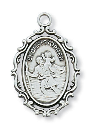 St. Christopher Sterling Silver Oval Medal on 18" Rhodium Plated Chain