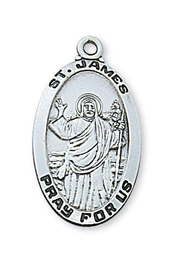 Sterling Silver St. James Patron Saint of Pharmacists Engravable Medal with 24" Rhodium Plated Chain