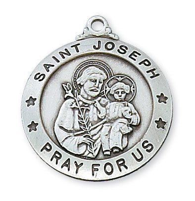St. Joseph Sterling Silver Medal on 24" Stainless Steel Chain