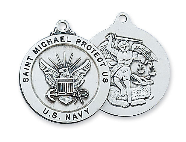 St. Michael Navy Service Sterling Silver Medal on 24" Chain