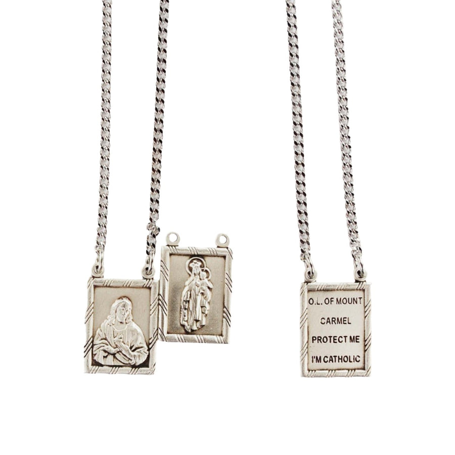 Sterling Silver Scapular with 30" Rhodium Plated Chain and Deluxe Gift Box