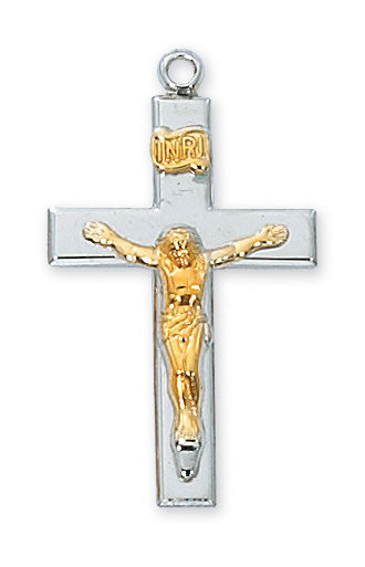 Sterling Silver 2 Tone Crucifix on 18" Chain