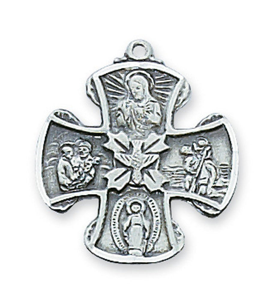 Sterling Silver 4 Way Medal with 18" Stainless Steel Chain