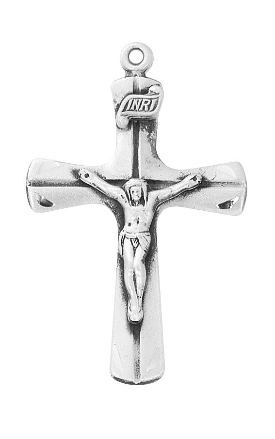 Sterling Silver Flared Ended Crucifix with 20" Rhodium Plated Chain