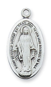 Sterling Silver Miraculous Medal with 18" Rhodium Plated Chain