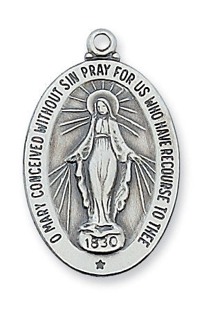 Sterling Silver Miraculous Medal with 20" Rhodium Plated Chain
