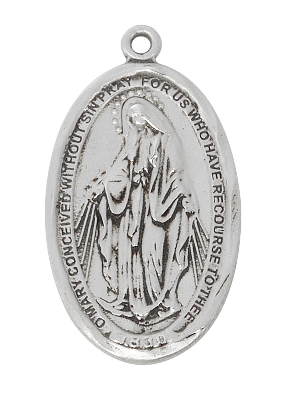Sterling Silver Miraculous Medal with 20" Stainless Steel Chain