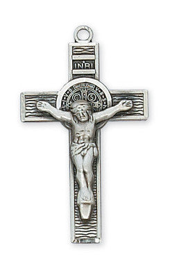 Sterling Silver St. Benedict Crucifix with 18" Rhodium Plated Chain and Deluxe Gift Box