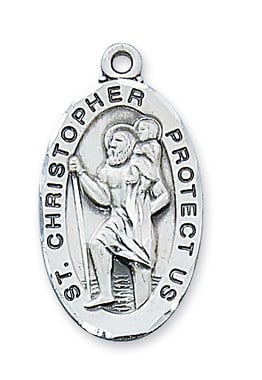 Sterling Silver St. Christopher Medal with 24" Rhodium Plated Chain