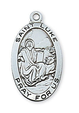 Sterling Silver St. Luke Patron Saint of Doctors Engravable Medal with 24" Rhodium Plated Chain