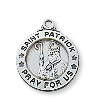 Sterling Silver St. Patrick Patron Saint of Ireland Engravable Medal with 18" Rhodium Plated Chain and Box