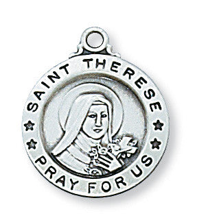 Sterling Silver St. Therese Patron Saint of Missionaries Engravable Medal with 18" Rhodium Plated Chain