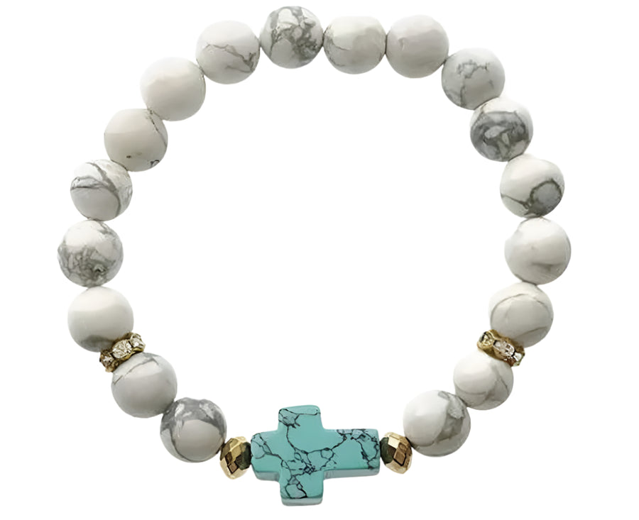 Turquoise Howlite Cross Beaded Bracelet