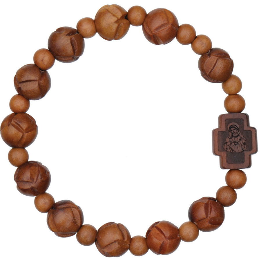 Carved Jujube Wood Rosary Bracelet