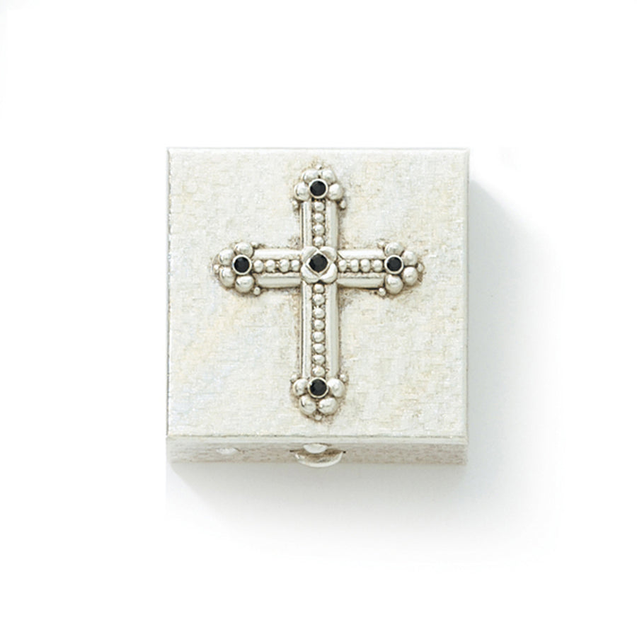 They make a special and unique vintage style gift for a friend or loved one. This lovely cross pill-box is a great way to keep your medications with you while you are on the go. Silver-tone metal is used for the box and raised cross. The black crystal accented cross is a beautiful reminder of your faith. Comes packaged in a Symbols of Faith gift box. They make a special and unique vintage style gift for a friend or loved one.