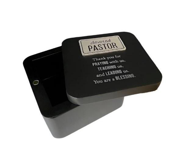 The pastor keepsake box is a gift to share with any beloved pastor. A congregation can fill the box with specific thank you notes, or perhaps a gift inside to surprise the pastor with appreciation.