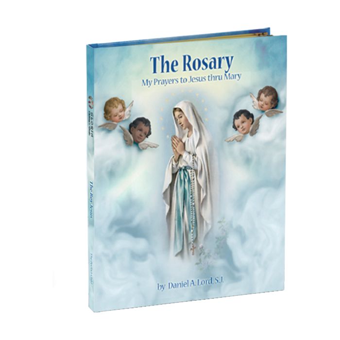 Our beautiful 'Gloria Series' Children's Book will be treasured and passed down for generations to come. Our quality Catholic children's book is beautifully-illustrated in full-color with our exclusive 'Fratelli Bonella' inspirational art collection from Italy. These sacred images may bring back beautiful memories from childhood. Our Catholic 'The Rosary' story and instructional book is written by the famous Catholic author Fr. Daniel Lord, S.J. This book has a light blue hardcover with a beautiful illustration of 'Our Lady with Angels' floating on clouds. Great book to have in your classroom, school library, CCD class, children's prayer group, and children's section in church during Mass. Makes a great gift for a Baptism, Christening, Communion, Birthday, Christmas, and Easter.