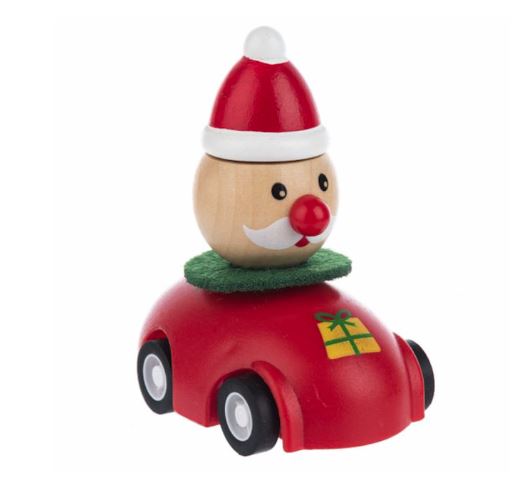 Adorable, holiday wooden pull back racer is a wonderful Christmas stocking stuffer.