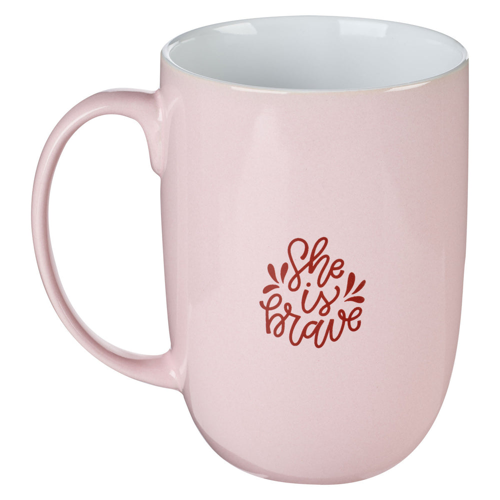 The She is Brave Soft Pink Ceramic Coffee Mug is part of the Pink She is Brave Collection designed to celebrate the women we admire. This collection also includes a wirebound journal and a handy-size faux leather journal.