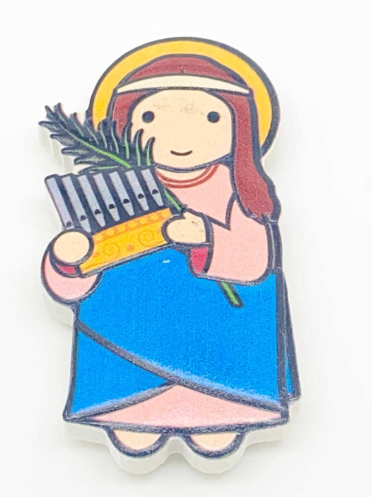 3D resin magnet with image of Saint Cecilia from the Little Drops of Water collection.