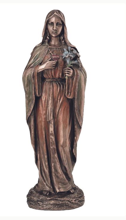 - Immaculate Heart of Mary in lightly hand-painted cold cast bronze