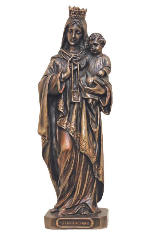 - Our Lady of Mt. Carmel in lightly hand-painted cold cast bronze