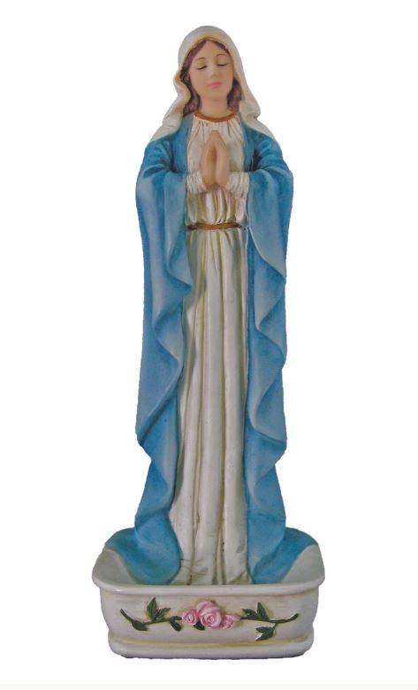 • Standing Praying Virgin rosary holder/holy water font in fully hand-painted color