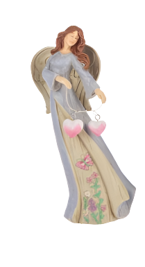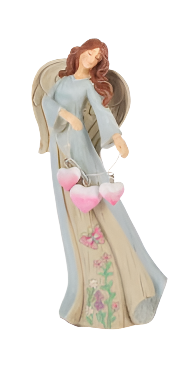 This beautiful Natural Mom Angel Figurine is wearing a colored dress with a floral vine design.