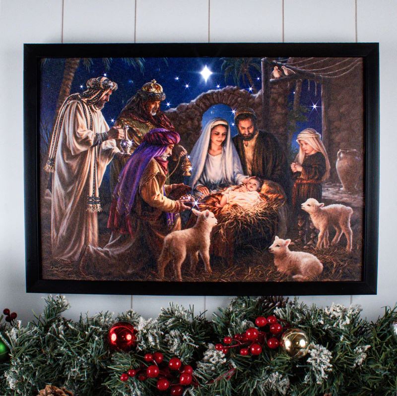 Experience the wonder of the Nativity with this stunning 14x20 Framed Fiber Optic piece. As you gaze upon the beautiful scene, you'll feel transported to a simpler time, when love and hope filled the air.