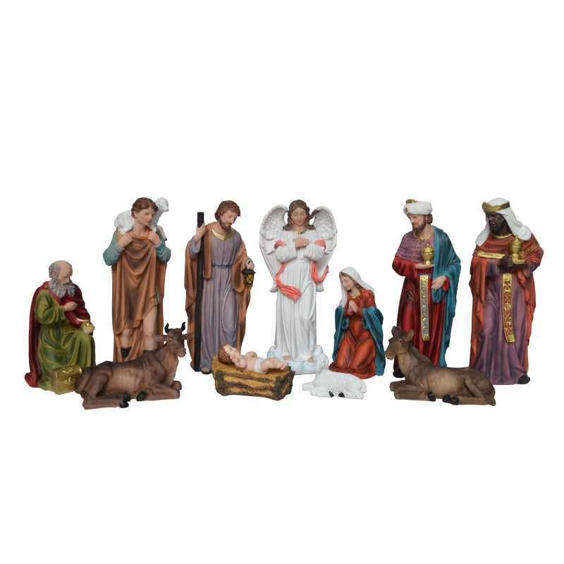 11 Piece Nativity Set Includes Shepherd, 3 Kings, Joseph, Mary, Baby Jesus, Angel & 3 Animals