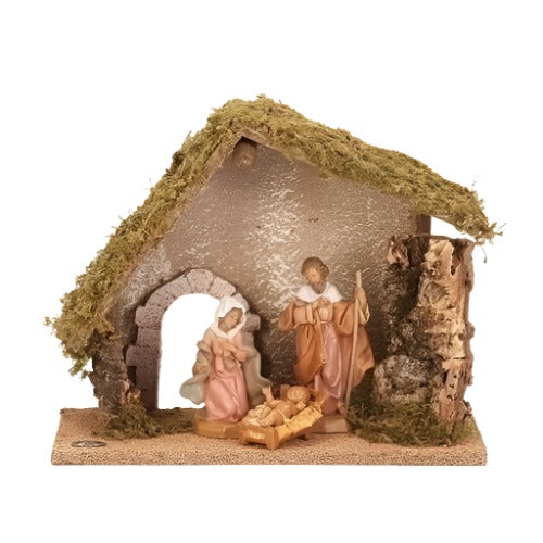 Roman Fontanini, 5" 3 Figure Nativity With Italian Stable. Perfect to display in homes, churches, and businesses. Hand Painted.