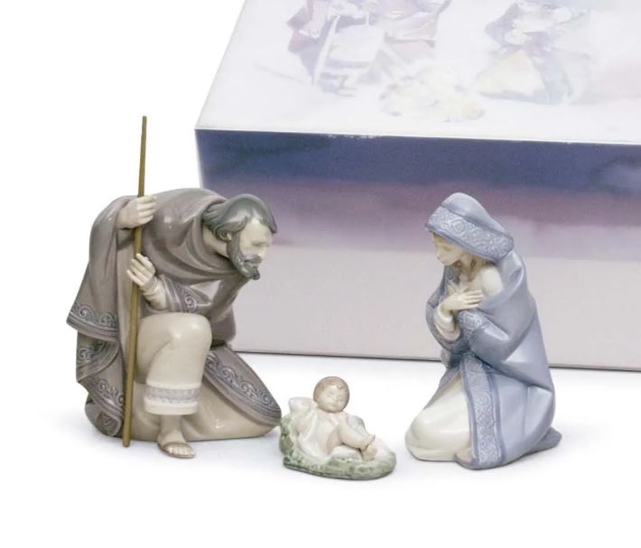 Three pieces that form a Holy Family. It is a group of glossy porcelain decorated with Lladró's classic pastel color palette, a set designed to create a warm and welcoming atmosphere in the home during the family days of Christmas.