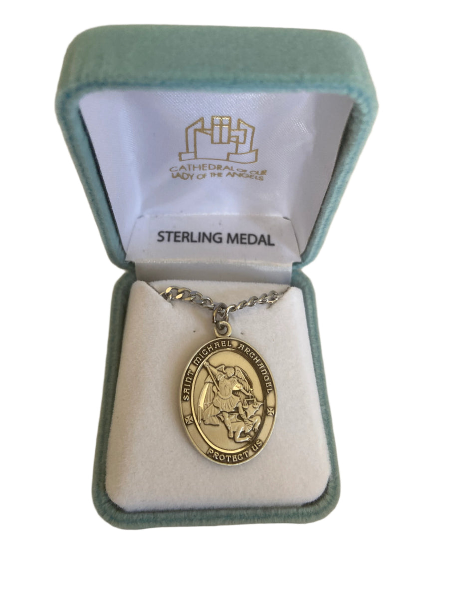 24" Sterling Silver St. Michael Archangel Oval Medal