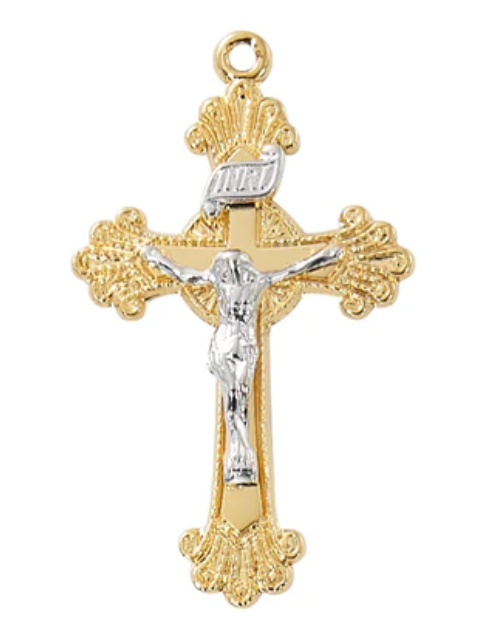Gold & Sterling Silver Fancy Two-Tone Crucifix on 16-18" Chain
