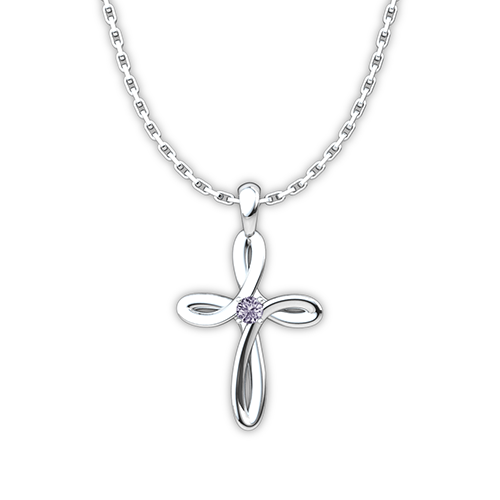 The simple yet stunning Swirl Cross Pendant comes with your choice of one of twelve lab colored birthstones. These June Alexandrite Birthstone Swirl Cross Sterling Silver Pendant Necklaces include an 18” sterling silver chain with a spring-ring clasp. The June Alexandrite Birthstone Swirl Cross Sterling Silver Pendant Necklace comes packaged in a lovely black velvet hinged gift box.