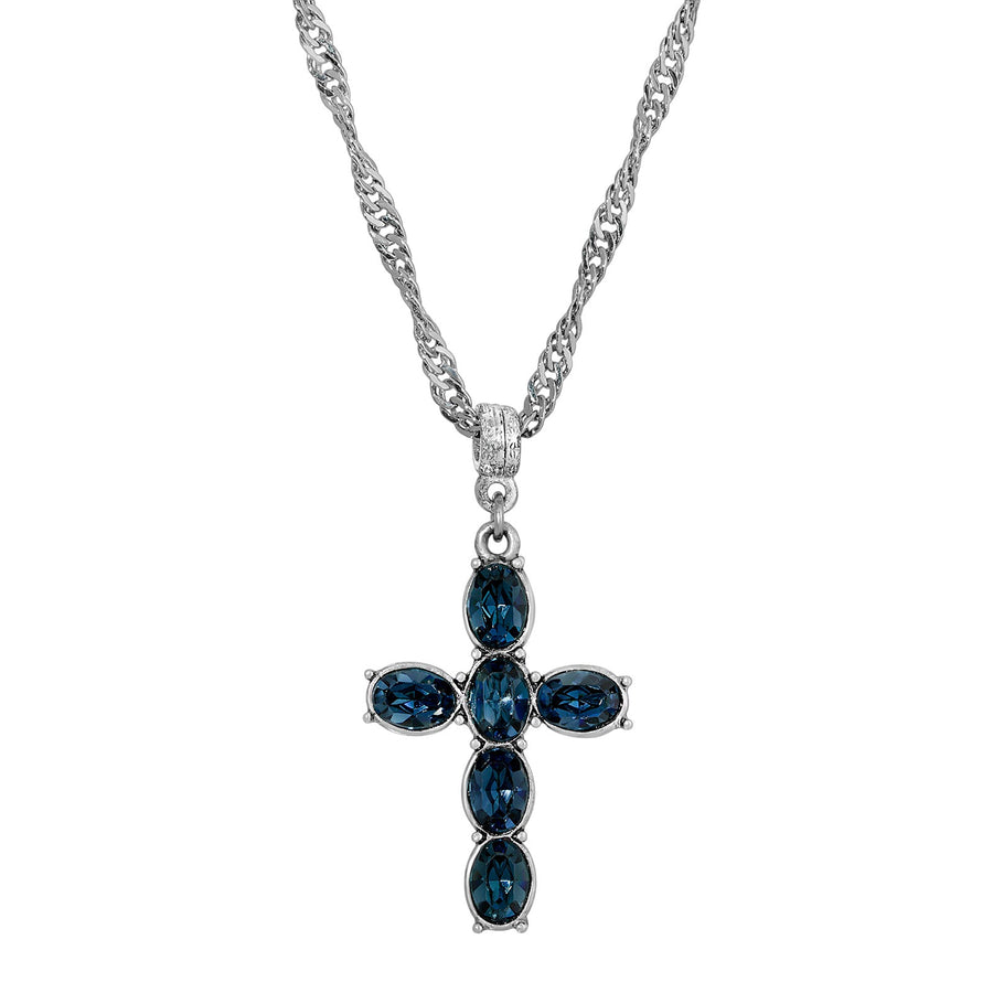 Give your outfit an instant classy vintage modern look with this crystal cross necklace. This necklace features 6 oval crystal glass tones, which are available in crystal clear, red and blue.