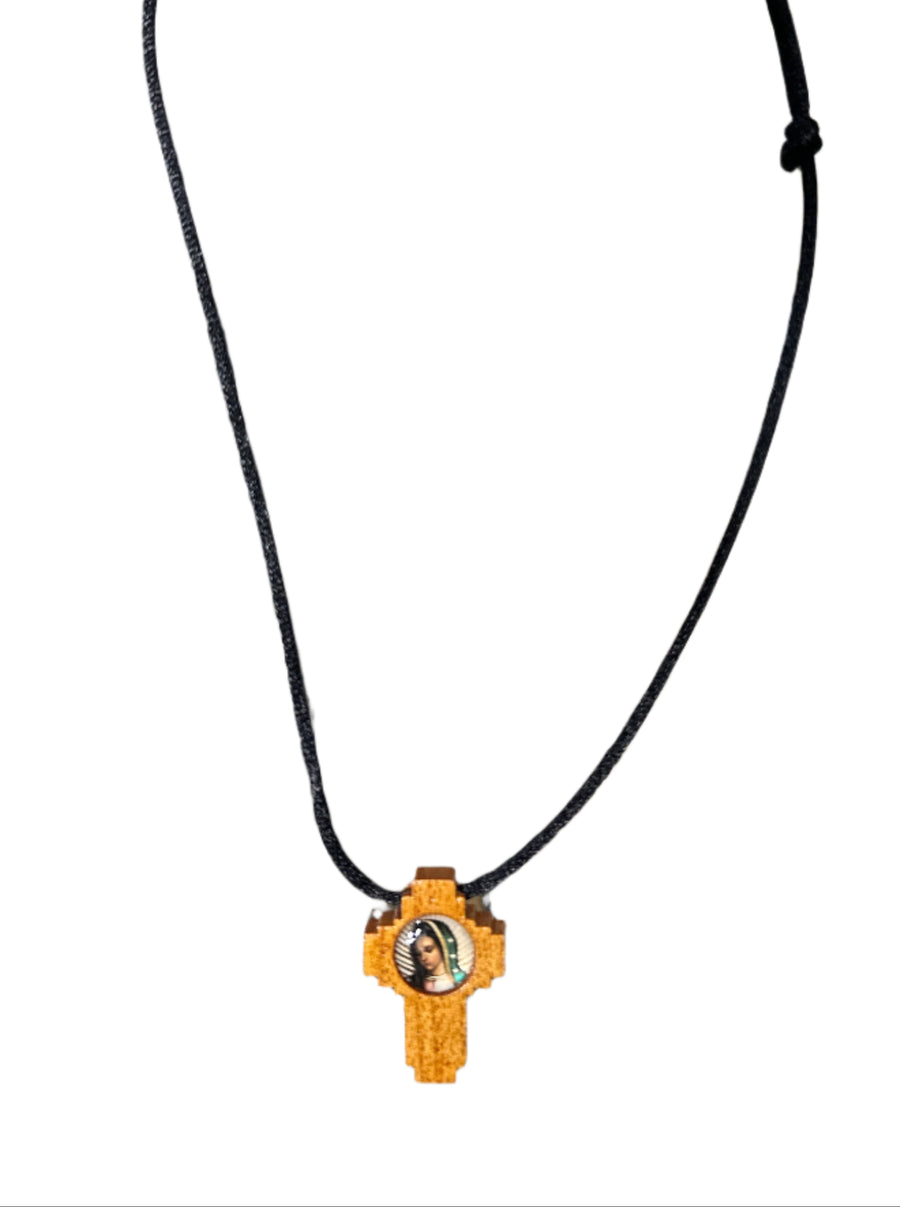 Our Lady of Guadalupe Wooden Cross Necklace - Small