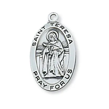 Sterling Silver St. Teresa Patron Saint of Headache Sufferers and Pain Engravable Medal with 18" Rhodium Plated Chain