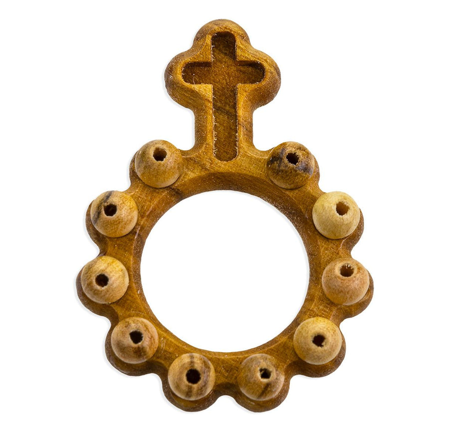 Carved Olive Wood Rosary Ring with Cross.