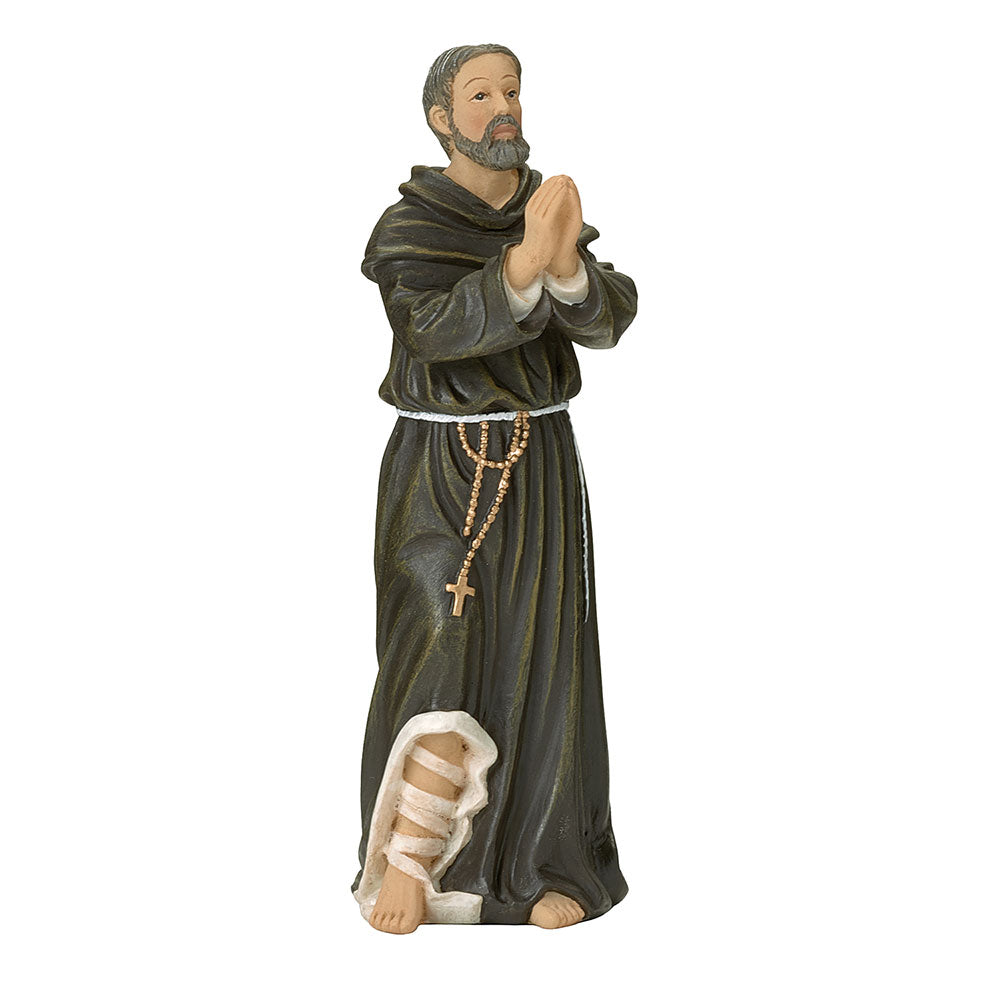 Figurine comes nicely displayed in a clear fronted box with the the Story of the saint on the outside and a prayer card inside.