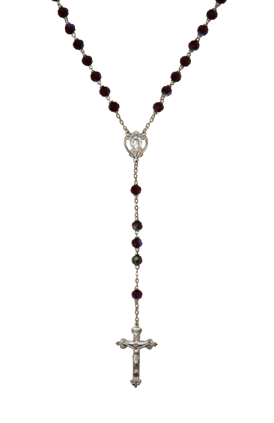 Garnet Aurora Czech Crystal Rosary with Sterling Silver Medal & Crucifix