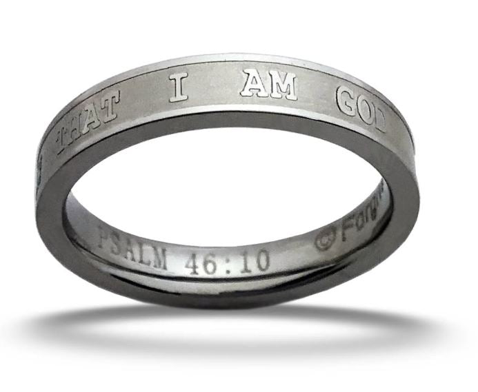 We designed this ring in 2007 that features a spinning device with the etched phrase "I Can Do All Things Through Christ" from Philippians 4:13. I can do spinner ring has a brushed metal finish with the black etched scripture reference of Philippians 4:13 that reads "I Can Do All Things Through Christ". The text is printed all the was around the outer spinner band. This band is fully functional because the outside band spins freely on an inner band, which is quite clever.