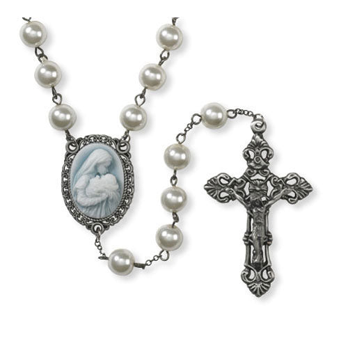 With exclusive art from Michael Adams, this gorgeous Cameo Collection rosary from Sacred Traditions™ is carefully designed with fine detail and ornate embossing. The rosary chain has 7 mm faux white pearl beads. Its richly crafted and detailed style has been inspired by vintage jewelry and is sure to become a treasured heirloom.