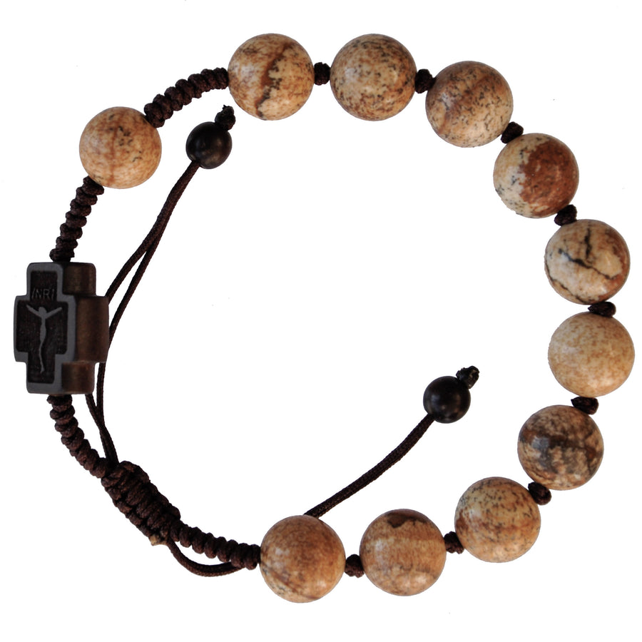 10mm Adjustable Picture Jasper & Jujube Wood Rosary Bracelet