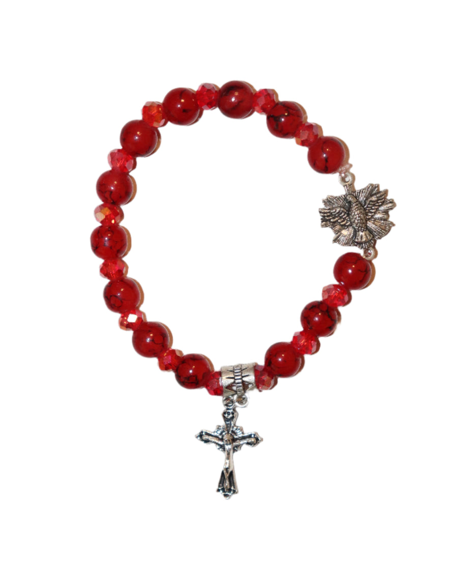 Red Crystal Bead Holy Spirit Rosary Stretch Bracelet