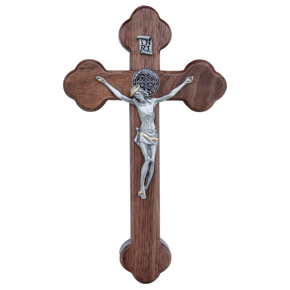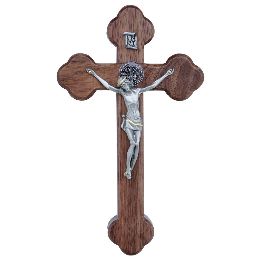 8″ Walnut St. Benedict Wall Crucifix