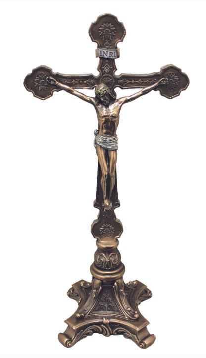 Ornate Standing Crucifix in lightly hand-painted cold cast bronze