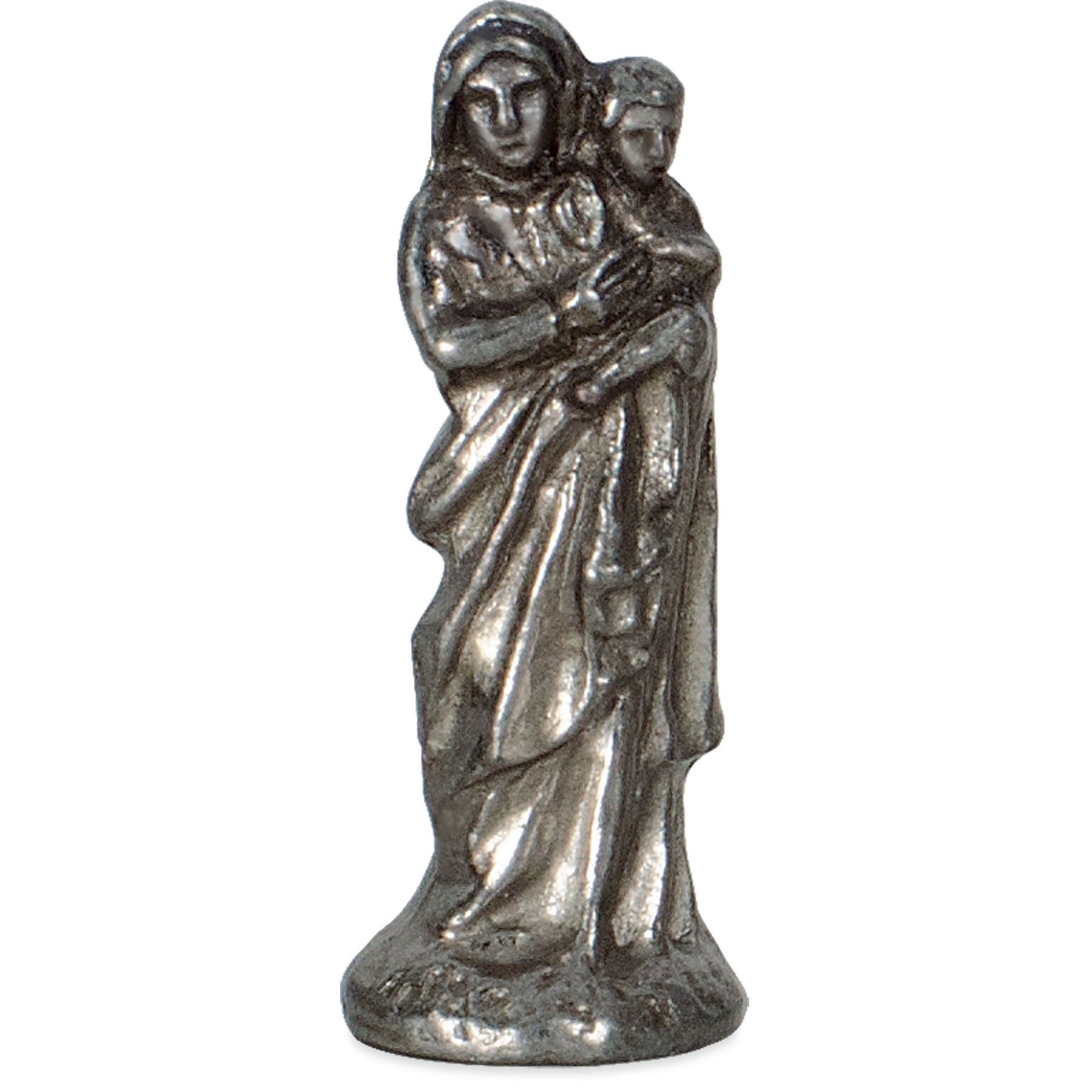 Mother Mary, the Patroness of all Humanity, is carved in this pewter figurine as she holds Baby Jesus in her arms. At only an inch tall, this mini but mighty representation of the Virgin Mary is an inspiring piece of Faith that is easy to keep with you at all times.