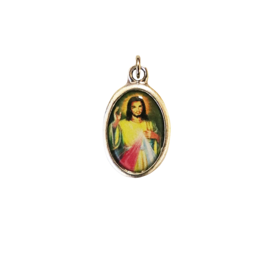 Divine Mercy Colored Image Set in Silver Colored Metal Medallion