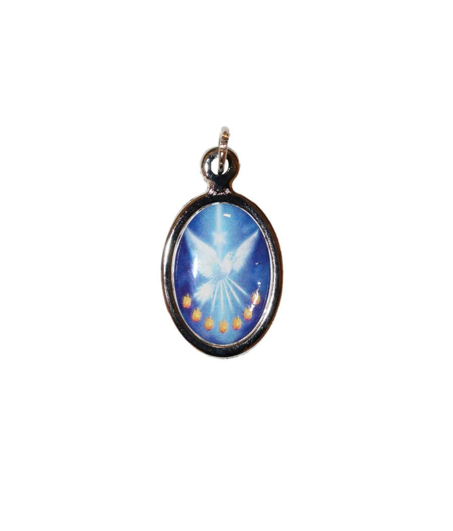 Holy Spirit Colored Image Set in Gold Colored Metal Medallion